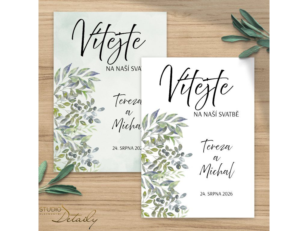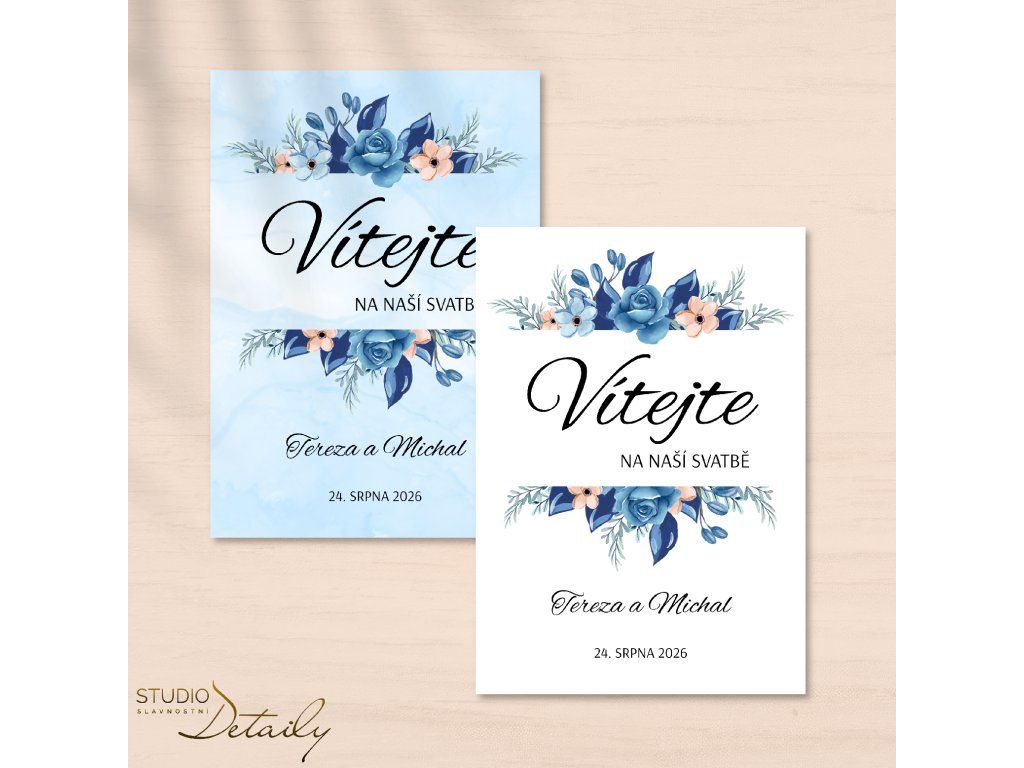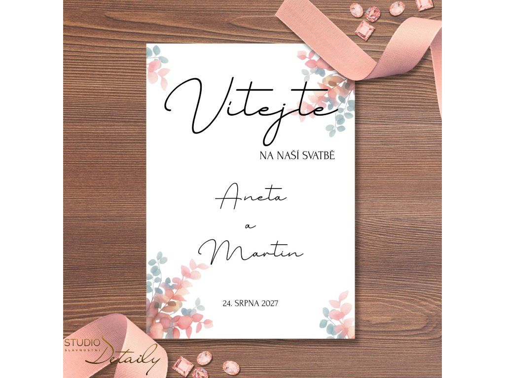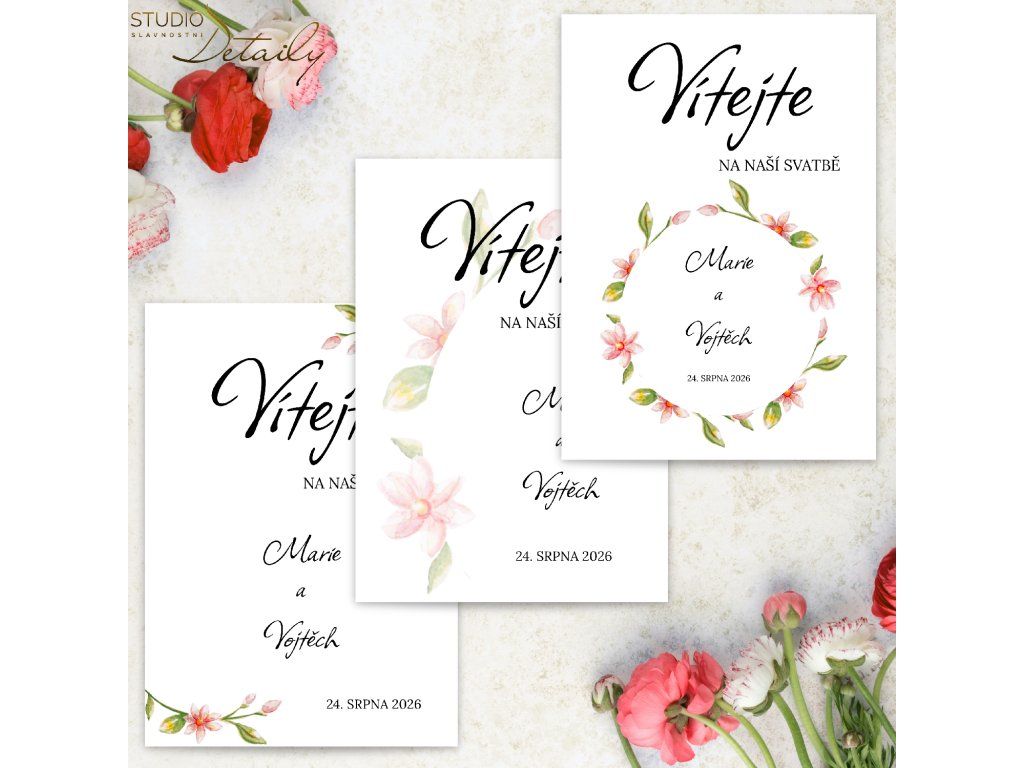 Ke svatební uvítací ceduli si můžete vybrat další svatební tiskoviny sladěné v jednotném stylu.