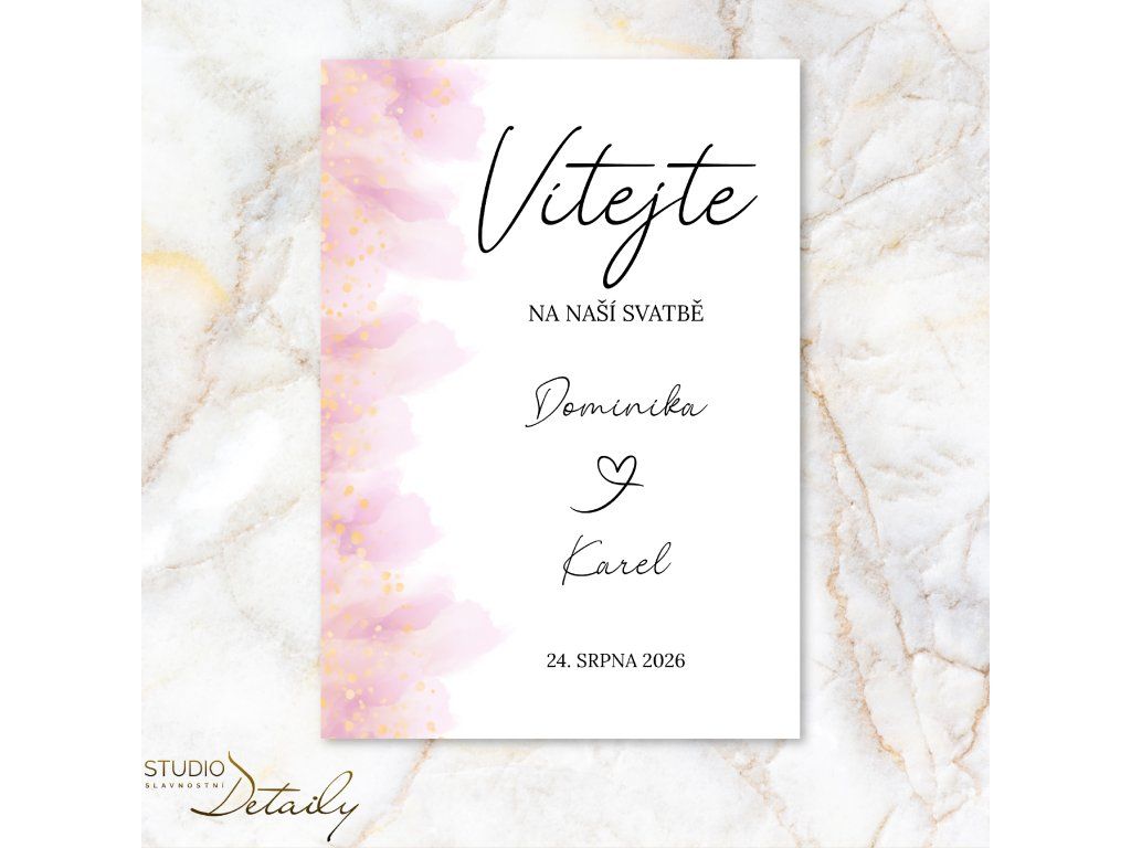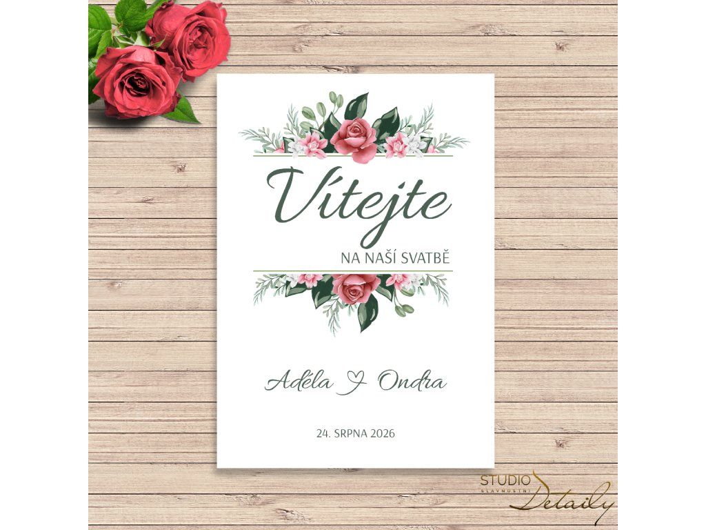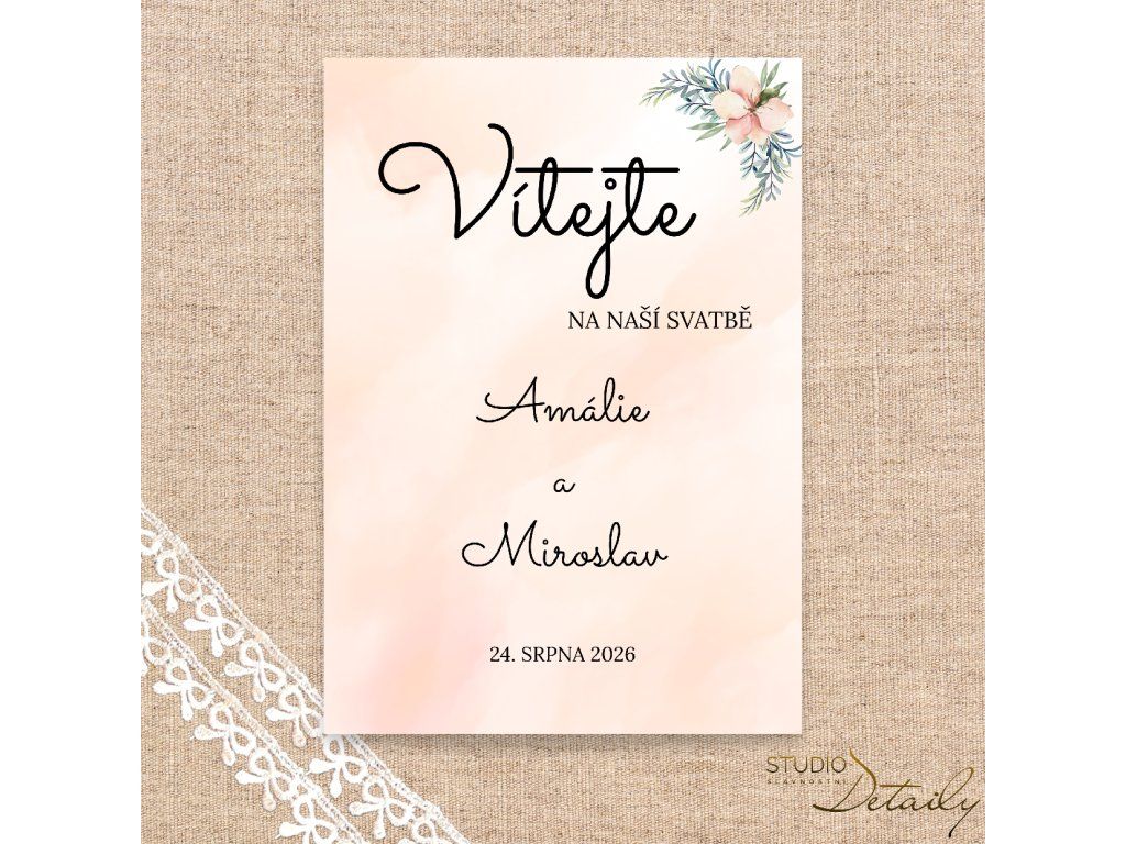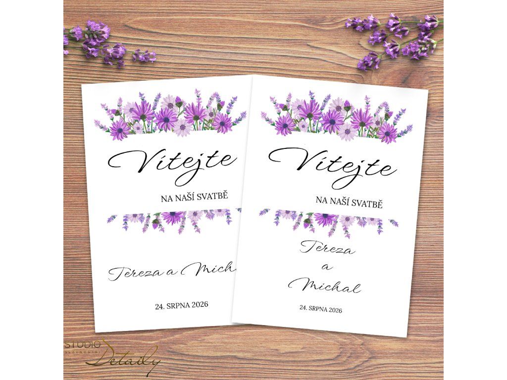 Ke svatební uvítací ceduli si můžete vybrat další svatební tiskoviny sladěné v jednotném stylu.