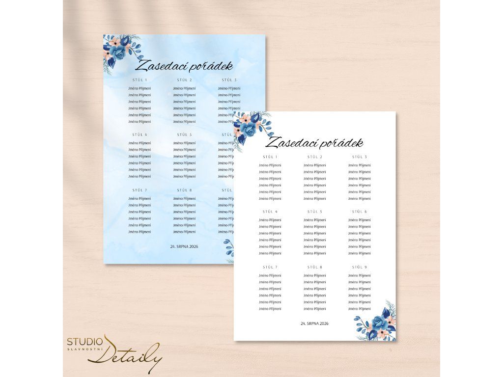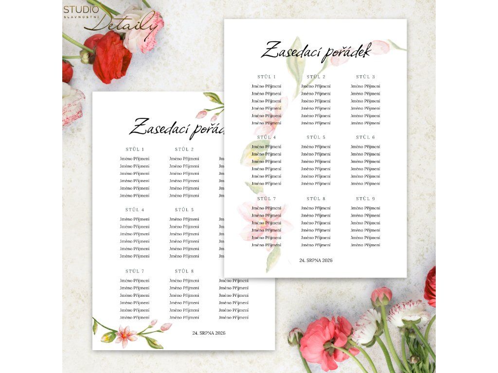 K zasedacímu pořádku si můžete vybrat další svatební tiskoviny sladěné v jednotném stylu.